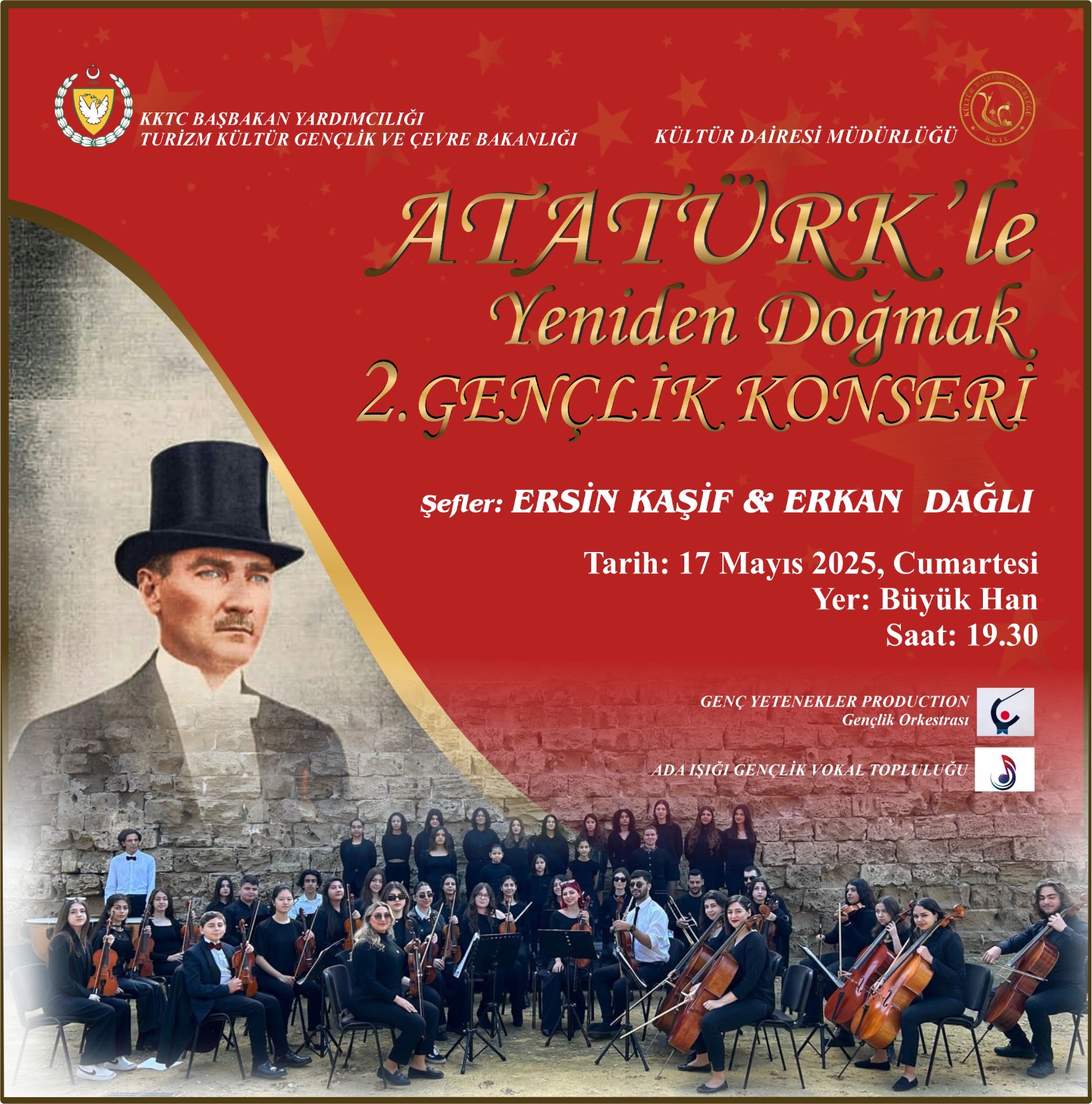 Kültür Dairesi, 19 Mayıs Atatürk’ü Anma Gençlik ve Spor Bayramı nedeniyle cumartesi akşamı Büyük Han’da “Atatürk’le Yeniden Doğmak 2. Gençlik Konseri” düzenliyor.