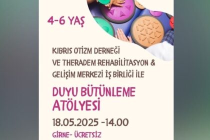 Kıbrıs Otizm Derneği’nin, Girne’deki ilk etkinliği 18 Mayıs Pazar günü Theradem Rehabilitasyon ve Gelişim Merkezi’nde yapılacak. Dernekten yapılan açıklamaya göre, Fizyoterapist ve Duyu Bütünleme Uzma...