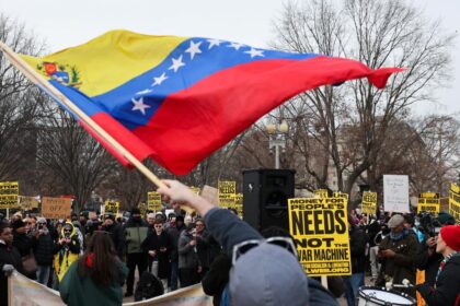 ABD’nin Venezuela’ya askeri müdahalesini kınamak amacıyla birçok gösterici Beyaz Saray önünde toplandı. Göstericiler, “Petrol için kan dökülmesin”, “Bu savaş ...