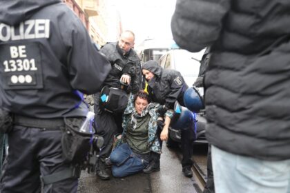 Başkentin Hackescher Markt bölgesinde, Gazze’deki İsrail saldırılarını protesto etmek, gazetecilerin öldürülmesine ve Gazze’de yaşanan açlık krizine dikkati çekmek için yaklaşık 200 ...