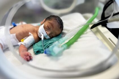 Gazze’nin orta kesimindeki Deyr el-Belah’ta bulunan Aksa Şehitleri Hastanesinde açlık ve yetersiz beslenmeyle mücadele eden 1 yaşındaki Mekke el-Ğarabili, İsrail’in insani yard...