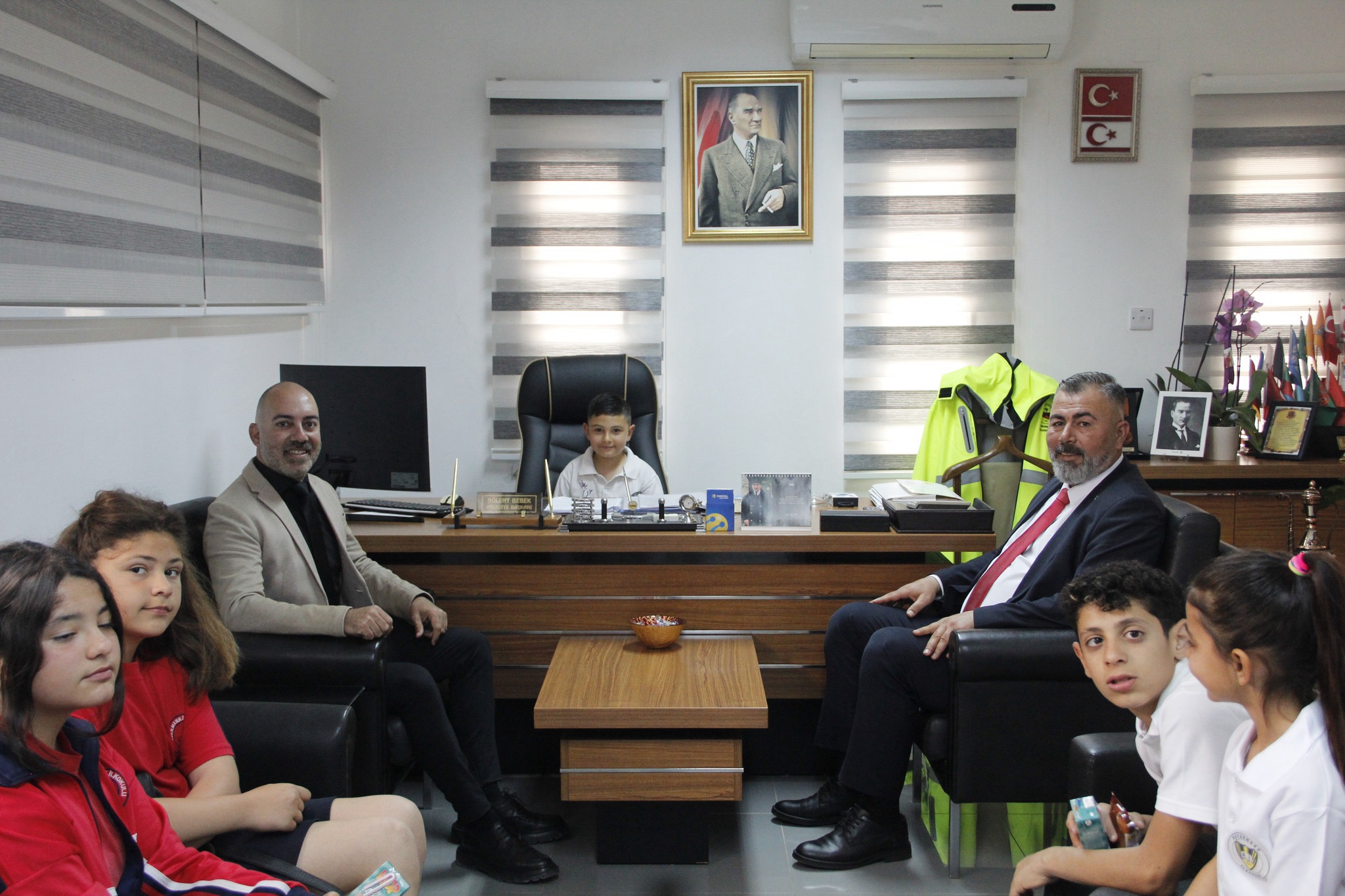 Beyarmudu Belediye Başkanı Bülent Bebek, 23 Nisan Ulusal Egemenlik ve Çocuk Bayramı vesilesiyle bölge ilkokullarından bir grup öğrenciyi kabul etti.