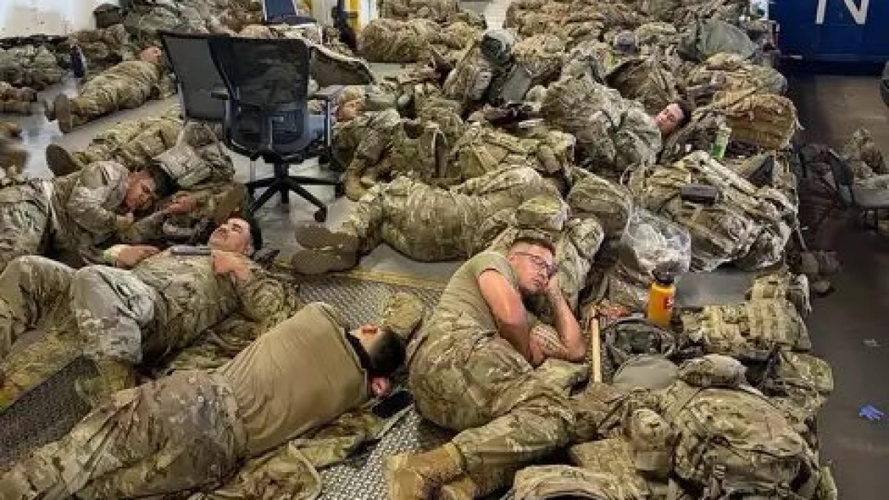 California Valisi Newsom, X hesabından ABD Ulusal Muhafızları’nın yerde yatarken çekilen fotoğrafını paylaştı.