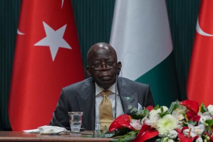 Türkiye’yi ziyaret eden Nijerya Cumhurbaşkanı Tinubu, Cumhurbaşkanı Recep Tayyip Erdoğan ile Cumhurbaşkanlığı Külliyesi’nde görüşmesinin ardından düzenlenen ortak basın toplantısında...