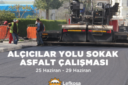 Lefkoşa Türk Belediyesi (LTB), yarından itibaren 29 Haziran Pazar gününe kadar Dumlupınar bölgesindeki Alçıcılar Yolu Sokak’ta asfalt döküm çalışması yapılacağını duyurdu. Belediyeden yapılan açıklam...