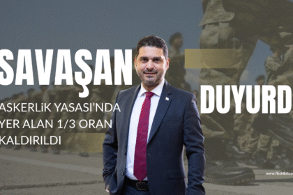 UBP Genel Sekreteri ve Cumhuriyet Meclisi İdari, Kamu ve Sağlık İşleri Komitesi Üyesi Ahmet Savaşan, kişisel sosyal medya hesabında yaptığı paylaşımla Askerlik Yasası’ndaki 1/3 oranının kaldırılmasına...