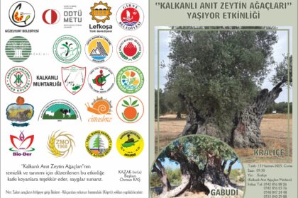 “Kalkanlı Anıt Zeytin Ağaçları Yaşıyor” etkinliği bazı dernek ve kurumların desteğiyle 13 Haziran Cuma günü saat 9.30’da Kalkanlı Anıt Ağaçları Merkezi’nde düzenlenecek. Kalkanlı Anıt Zeytin Ağaçları ...