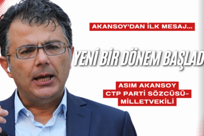 Cumhuriyetçi Türk Partisi (CTP) Parti Sözcüsü ve Milletvekili Asım Akansoy, Cumhurbaşkanlığı’nda düzenlenen törenle göreve başlayan 6. Cumhurbaşkanı Tufan Erhürman’a ilişkin açıklamalarda bulundu. Aka...