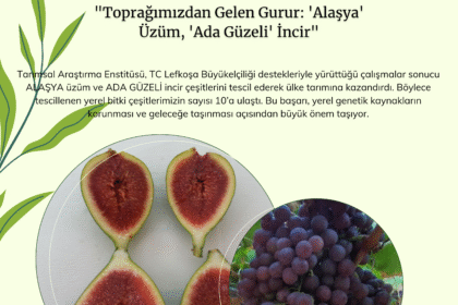 Tarımsal Araştırma Enstitüsü tarafından yürütülen KKTC Asma Genetik Kaynakları Projesi kapsamında, Kıbrıs’a özgü bitki genotiplerinden “Alaşya” üzüm çeşidi ve Ada Güzeli incir çeşidi TC Tohum Tescil v...