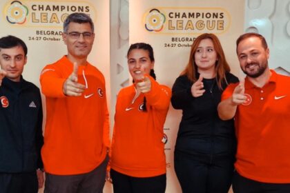 Sırbistan’ın başkenti Belgrad’da gerçekleştirilen ve yarın tamamlanacak Havalı Silahlar Avrupa Şampiyonlar Ligi Havalı Tabanca Takım yarı finalinde yarışan milli sporcular Yusuf Dikeç, Buğ...