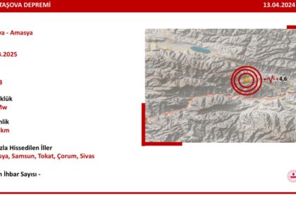 Türkiye’nin Amasya ilinde 4,6 büyüklüğünde deprem meydana geldi. Çevre illerde de hissedilen deprem korkuya neden oldu. Türkiye’nin Amasya ilinde saat 17.43’te 4,6 büyüklüğünde deprem meydana geldi. A...