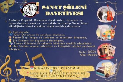 Canbulat Özgürlük Ortaokulu, yarın 19.00’da Rauf Raif Denktaş Kültür ve Kongre Sarayı’nda “Sanat Şöleni” düzenleyecek. Okul Müdürü Sedat Öğüt’ün verdiği bilgiye göre, etkinlikte görsel sanatlar ve tek...