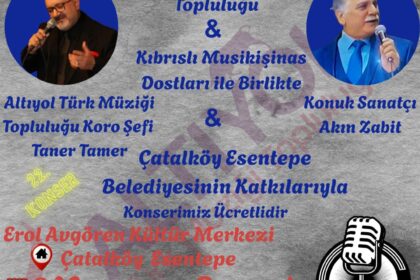 Altıyol Türk Müziği Topluluğu ve Kıbrıslı Musikişinas Dostları Çatalköy’de sahne alacak. Çatalköy Esentepe Belediyesi’nin katkılarıyla düzenlenecek konser, 8 Mayıs Perşembe günü saat 20.00’de Erol Avg...