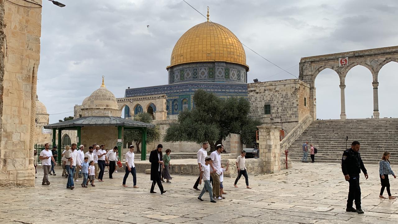 Gruplar halinde Aksa’nın avlusunda provokatif şekilde tur atan fanatik İsrailliler, burada “Talmudik” ayinler gerçekleştirdi.