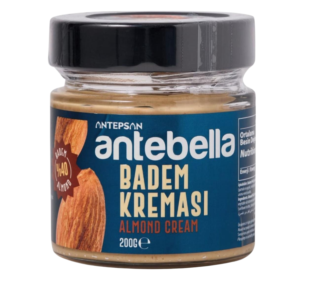 “Ürün: Antepsan – Antebella Badem Kreması; Net ağırlık: 200g; Üretim tarihi (PRD): 02/04/2025; Son tüketim tarihi (EXPD): 02/04/2026; Lot No: 06090202425”