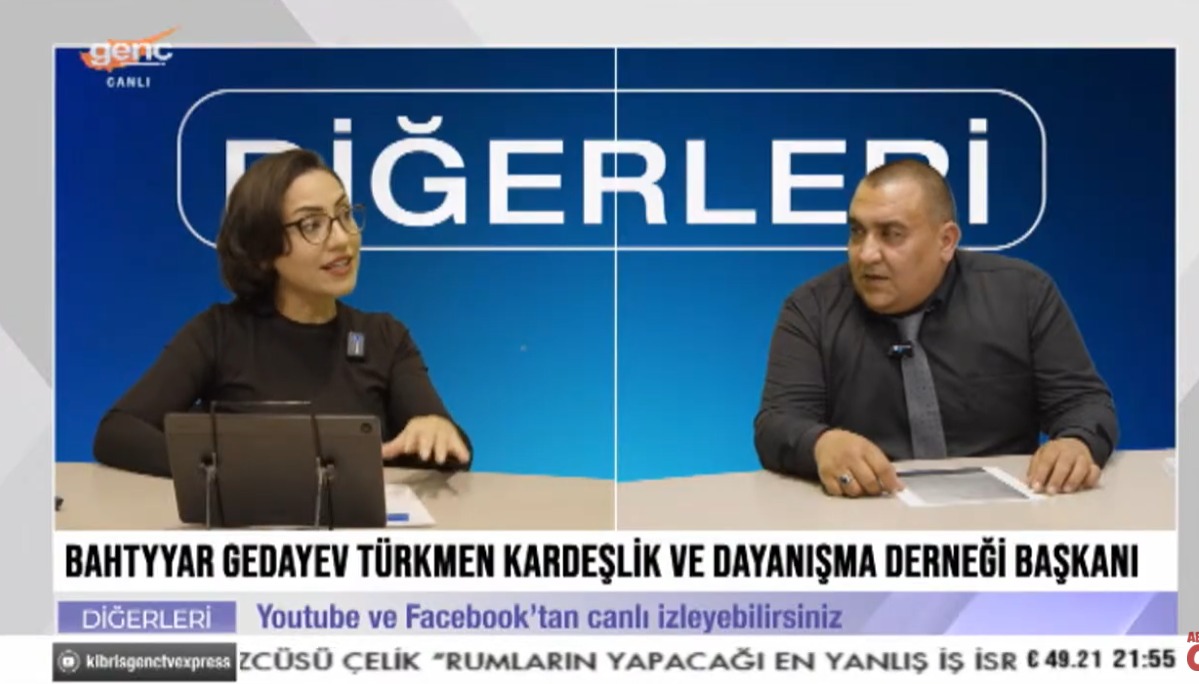 Genç TV’de Elif Evrensel’in hazırlayıp sunduğu “Diğerleri” programının son bölümünde, KKTC’de yaşayan Türkmenistanlı işçilerin durumu ele alındı. Programın stüdyo konuğu, Kuzey Kıbrıs Türkmen Kardeşlik ve Dayanışma Derneği Başkanı Bahtiyar Gedayev oldu.
