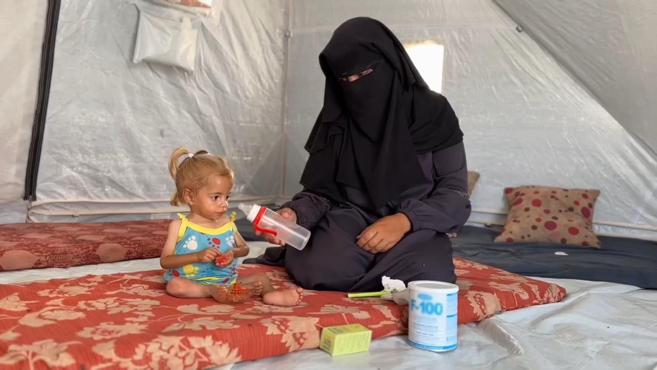 Çadırdaki olumsuz hava koşullarının ve “açlığın” bitap düşürdüğü Şam sürekli ağlıyor. Anne İslam Kıdeyh ise kızının bu hali karşısında çaresiz bir şekilde ilgili makamlara kızını kurtarmaları için yardım çağrısında bulunuyor.
