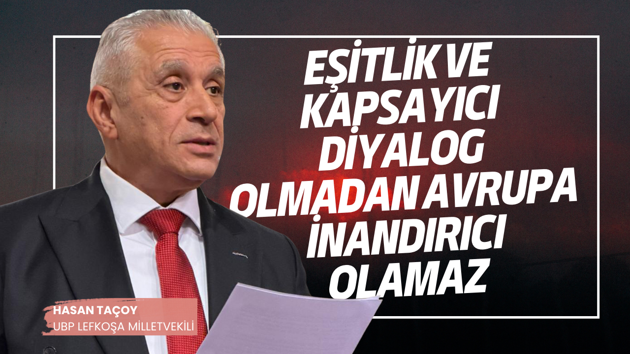 Kıbrıs Türk tarafının, kalıcı barış için tek gerçekçi yol olan “egemen eşitlik ve eşit uluslararası statüye dayalı çözüm” konusundaki kararlılığını sürdürdüğünü vurgulayan Taçoy, Avrupa’nın inandırıcı olabilmesi için Kıbrıs Türk halkı da dahil olmak üzere tüm taraflara eşit hak ve kapsayıcı diyalogla yaklaşması gerektiğini ifade etti.