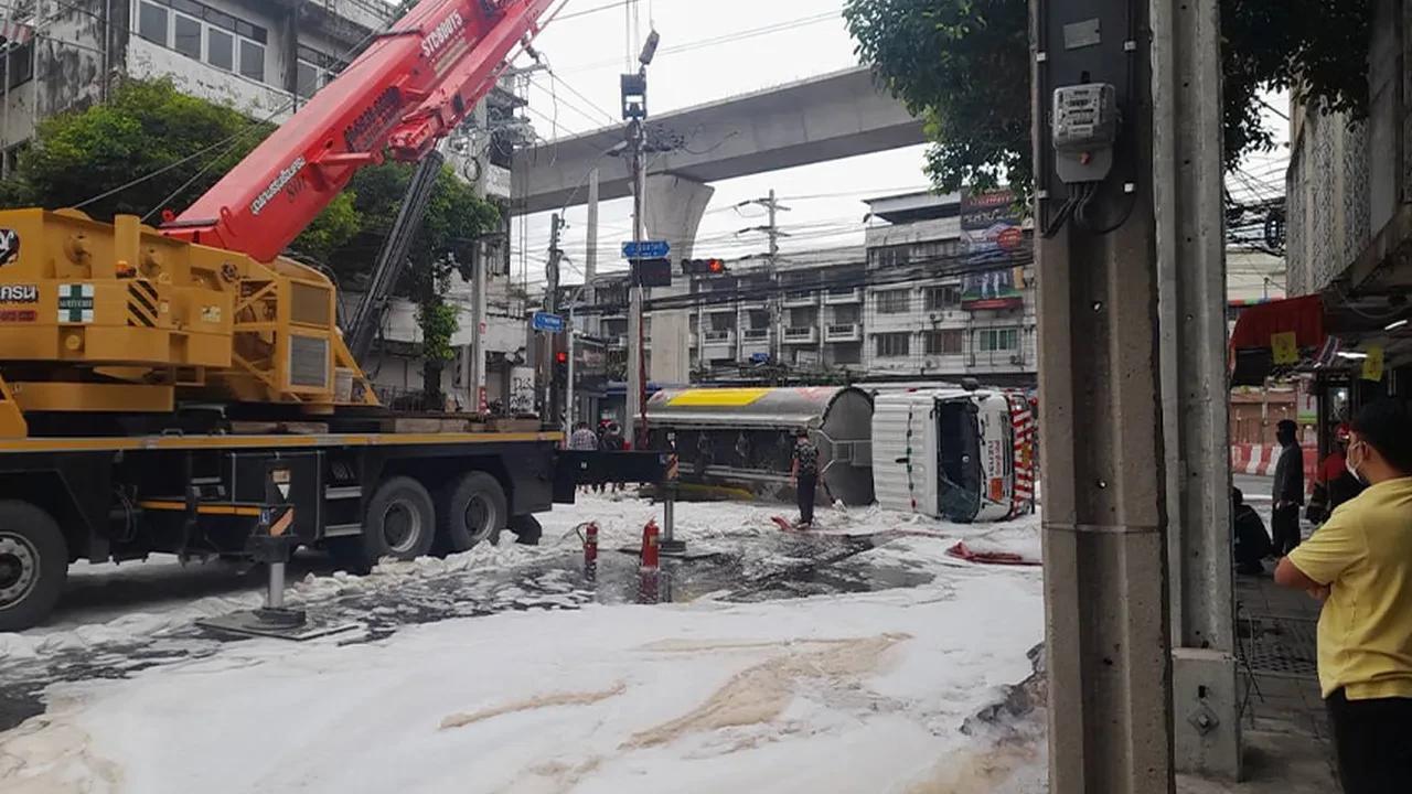 Tayland’da akaryakıt tankeri kazaya karıştı. Yaşanan kazada faciadan kıl payı dönüldü. Bangkok’un Rat Burana ilçesinde, çok sayıda ev ve işyerinin bulunduğu bir sokakta konteyner yüklü bir tır ile akaryakıt tankeri çarpıştı. Kaza sonucu 16 bin litre akaryakıt taşıdığı tespit edilen tanker yan devrilirken, 600 litre benzin yola döküldü.