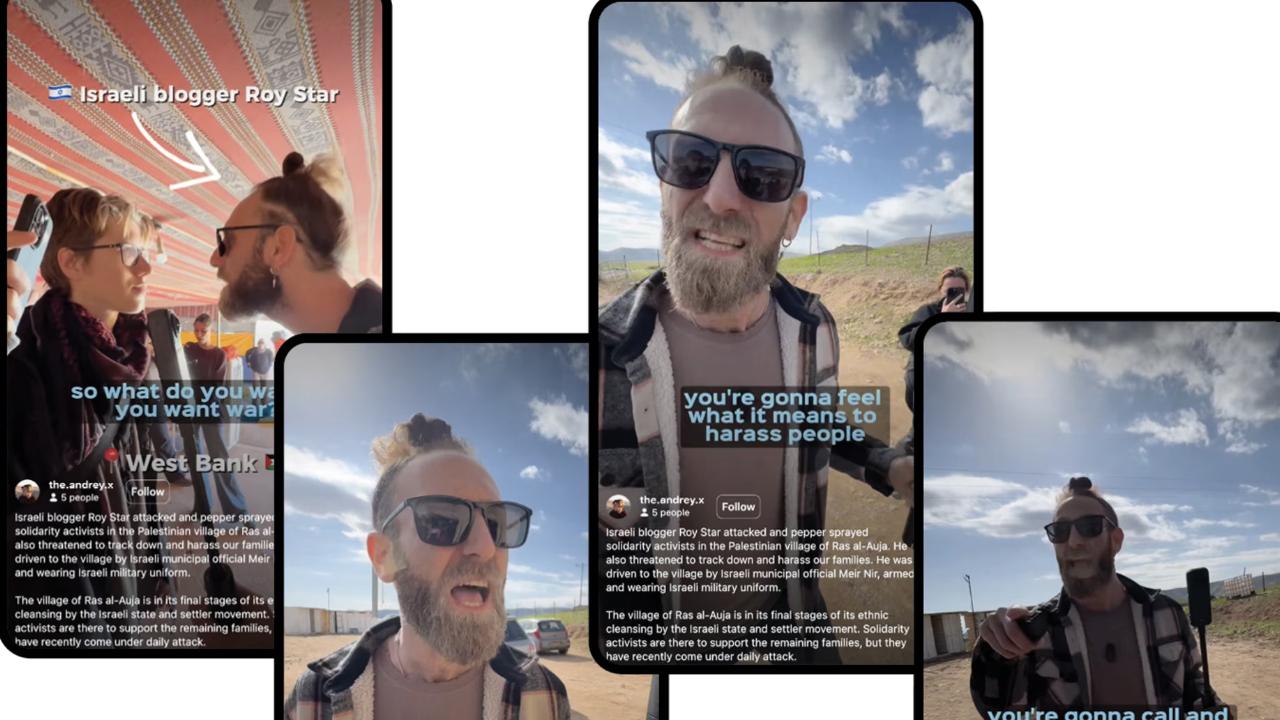Kapatılan hesabın sahibi Roi Star’ın paylaştığı bir videoda, Ürdün Vadisi’ndeki bir eve zorla girerek kendisini engellemeye çalışan bir aktivistin yüzüne yakın mesafeden biber gazı sıktığı ve “Burası Filistin değil, Yahudiye” diye bağırdığı kayıtlara geçti.
