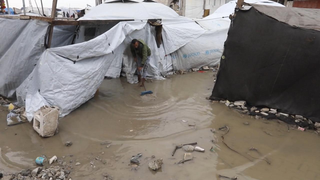 Ateşkese rağmen İsrail’in çadır ve barınma malzemelerinin girişine izin vermediği, bu nedenle yüz binlerce kişinin yıpranmış derme çatma çadırlarda yaşadığı Gazze Şeridi’nde, soğuk hava dalgası ve fırtına etkili oluyor.